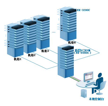 二,树状级联管控 ·EK-8000C支持2层树状级联方式,与Eakun品牌的各种型号KVM主机完美兼容。与EK-3200C级联最多可管控256台服务器主机。 | ![]() |